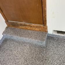 This floor need self leveling to fix all the pitting & spaulding. 1 wood step leading into house, fixed all cracks, pitting, spaulding, remove all oil stains, paint overspray, ect. Then complete floor grind, install FloorShield 100% Polyaspartic Concrete Coating System. Also fix old wood step & vertical sidewalls to match entire floor. Includes 15 Year Non-Pro-rated Manufacture Warranty.